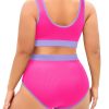 Full Coverage Two-Piece Swimsuit Plus Size: Sporty colorblock bikini set with a removable soft sports bra to provide you with good support.