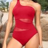 Women’s One Shoulder Red One-Piece Swimsuit